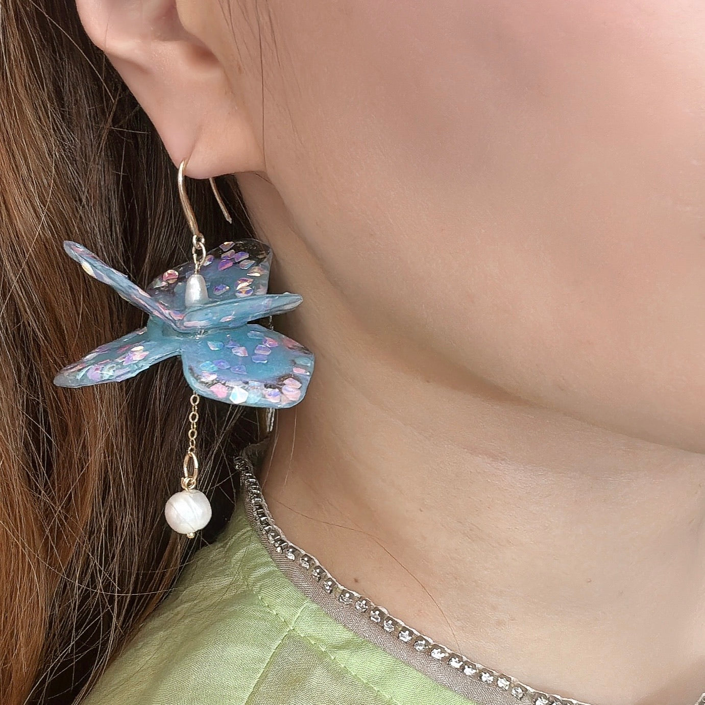 As you walk, turn your head, or laugh, the earrings catch the light beautifully, creating a sense of movement that feels effortless and graceful.