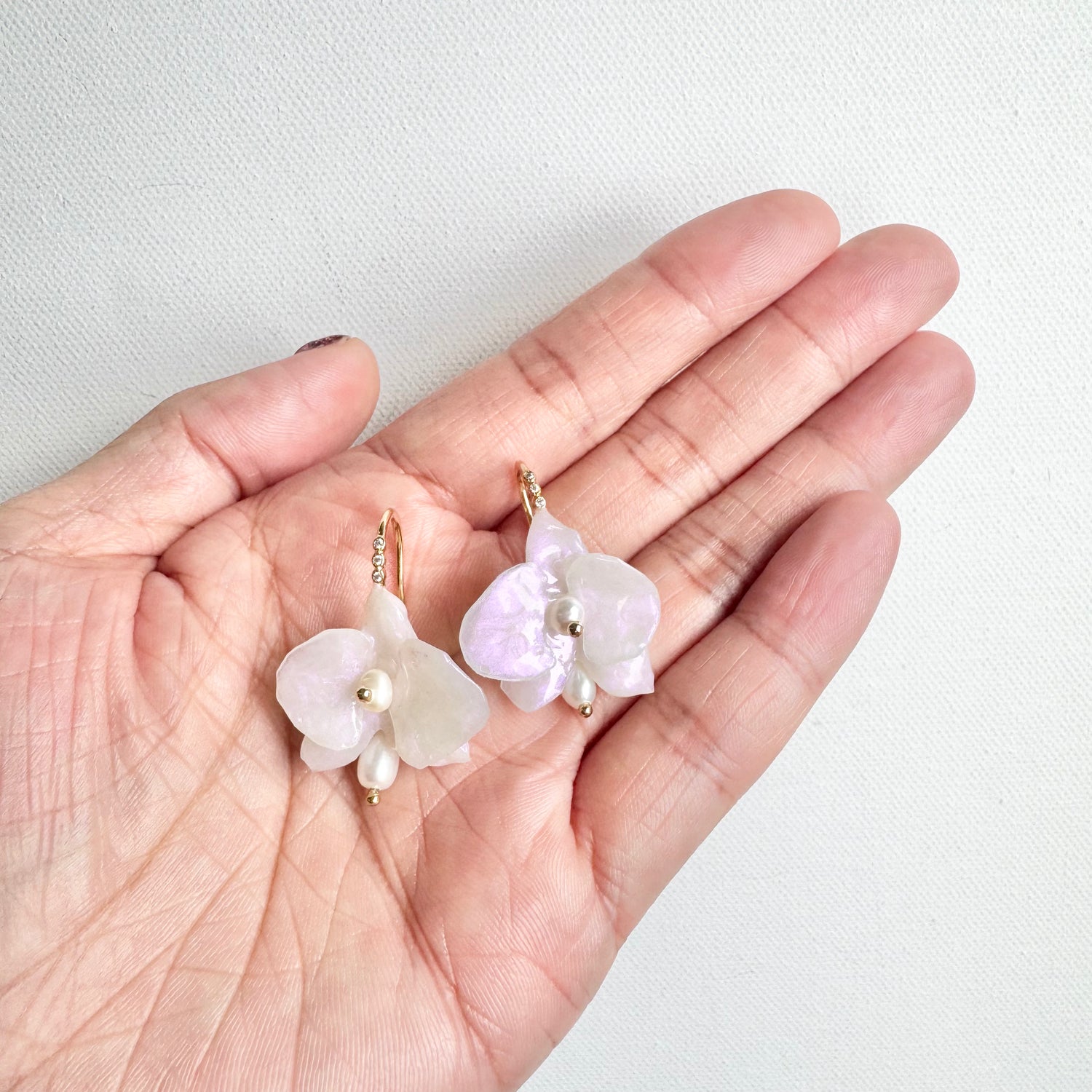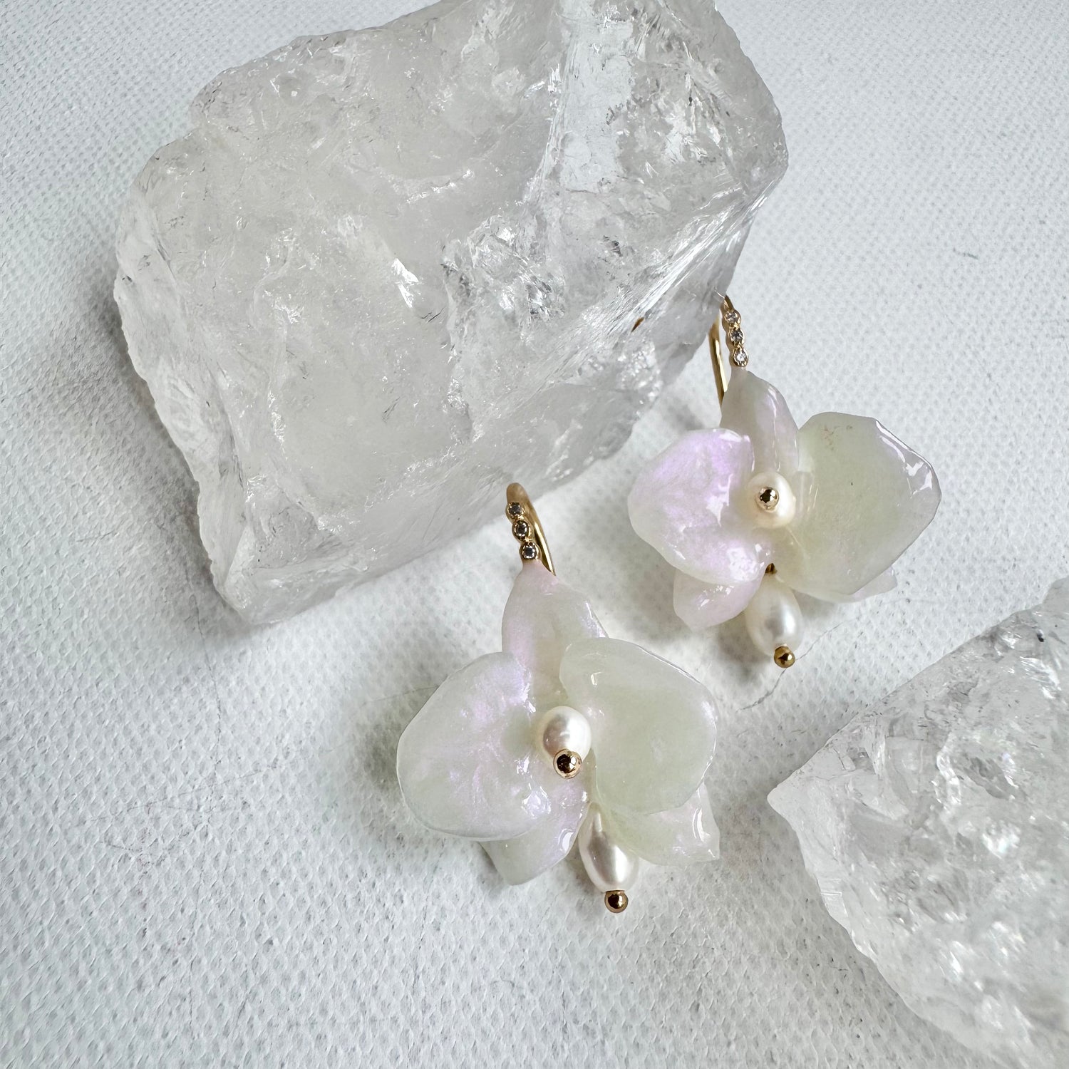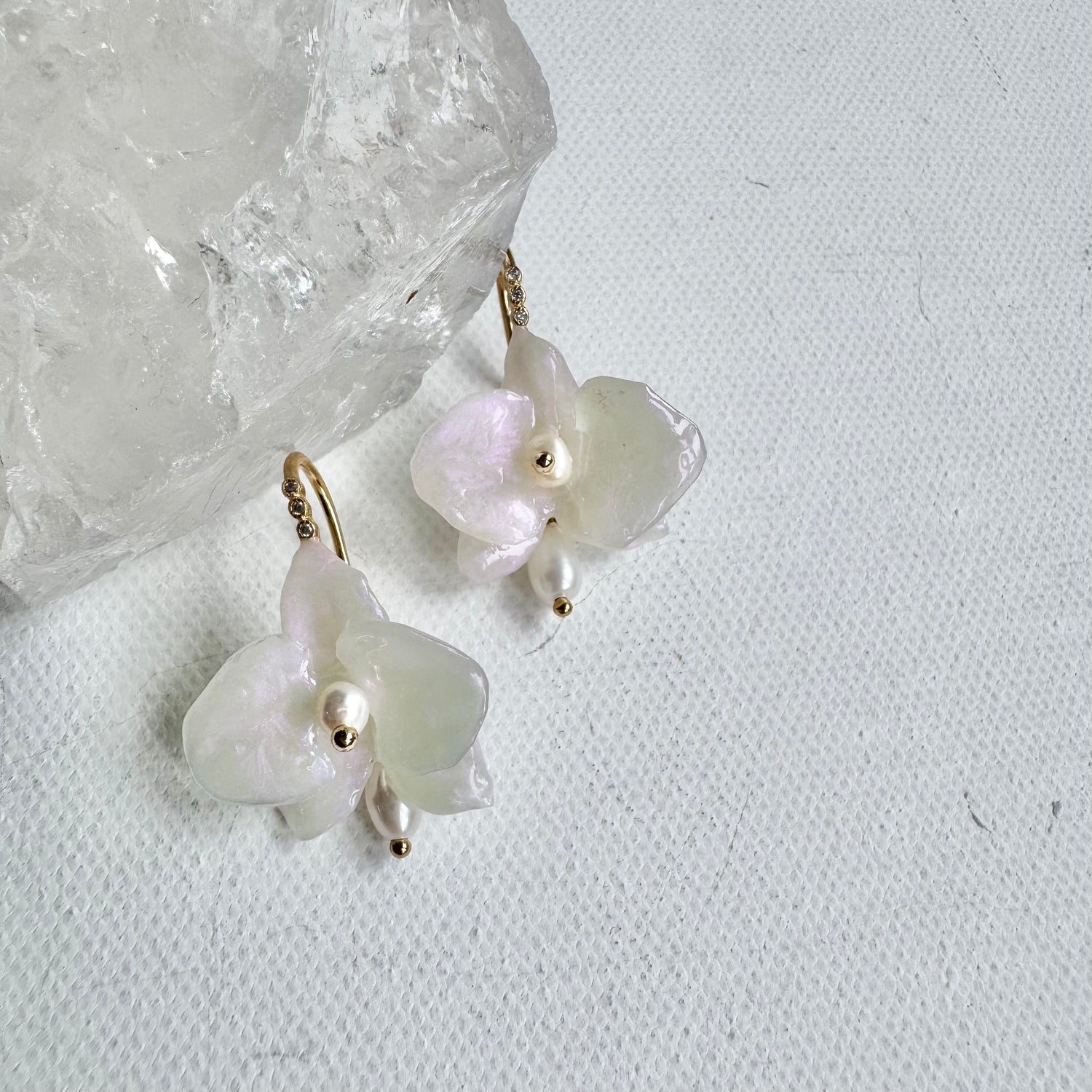 デンティー・オーキッド・ピアス 小さな胡蝶蘭 -パールホワイト-