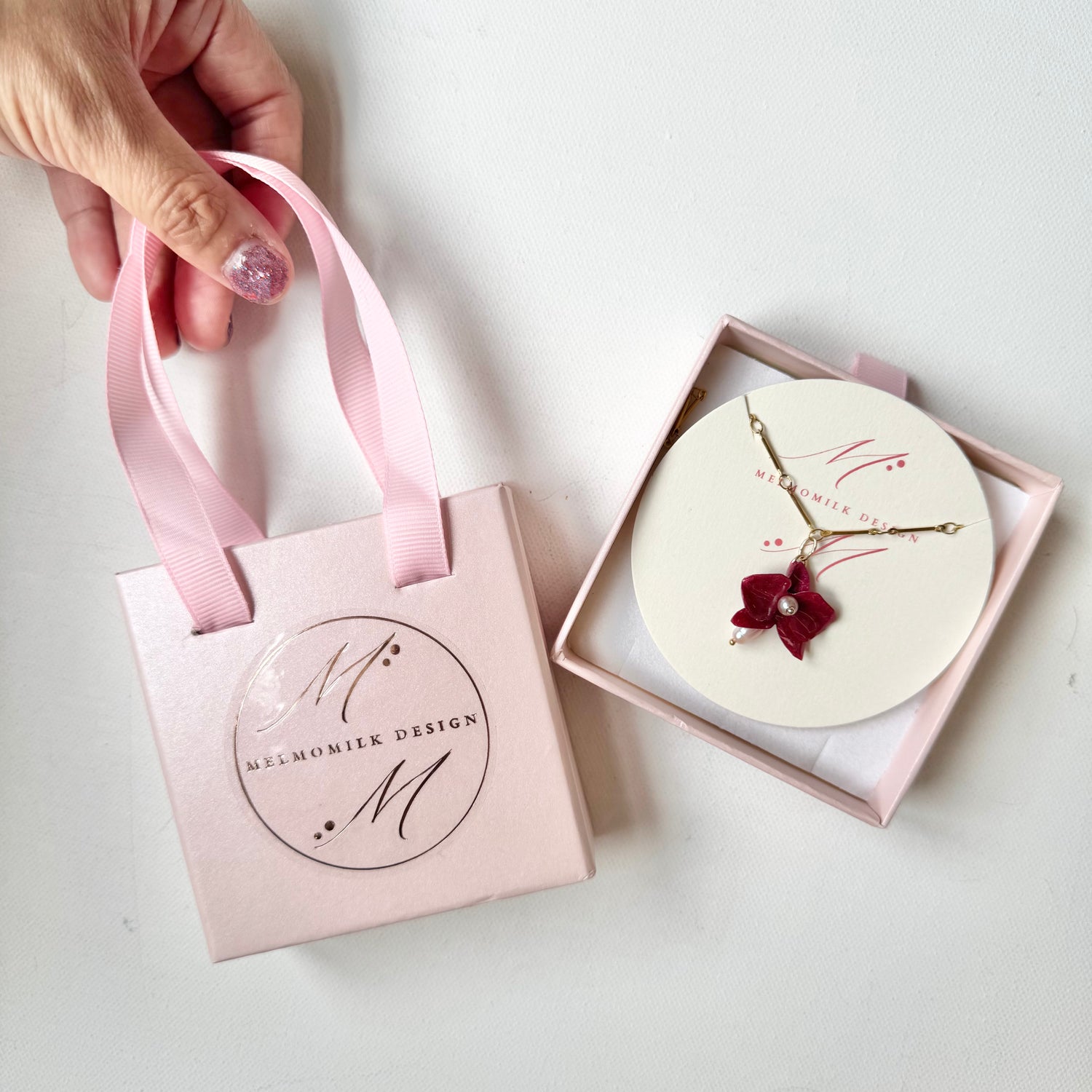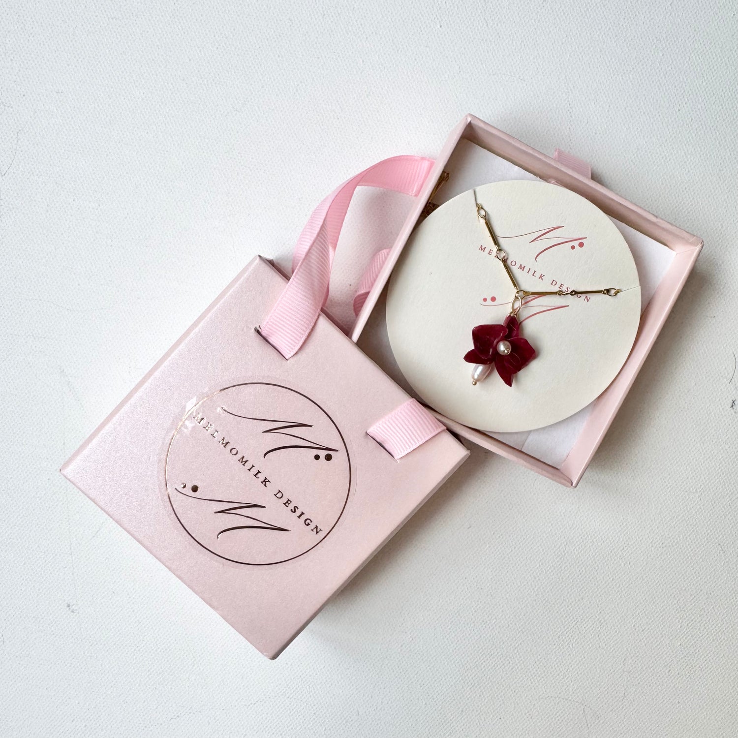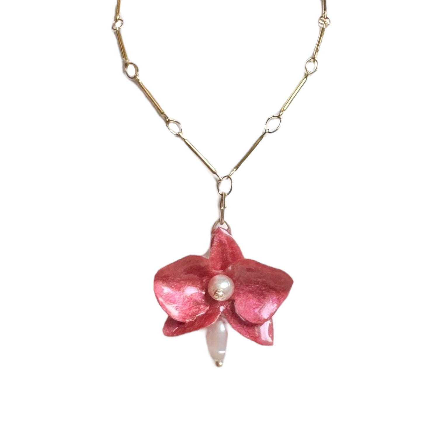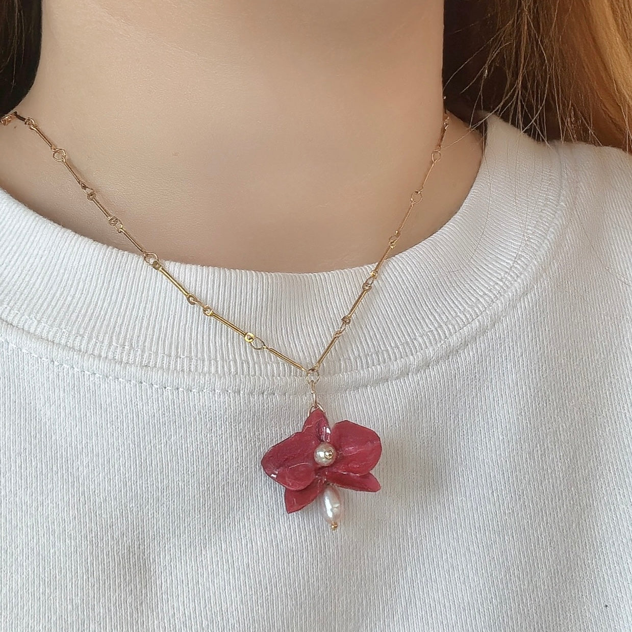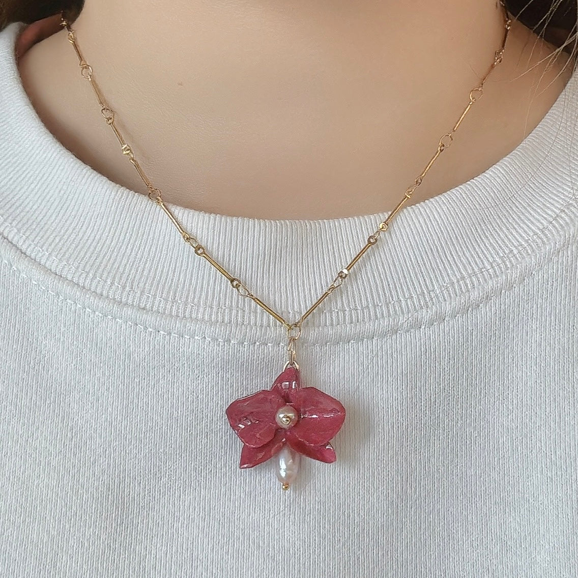 デンティー・オーキッド・ネックレス 小さな胡蝶蘭 -バーガンディー-