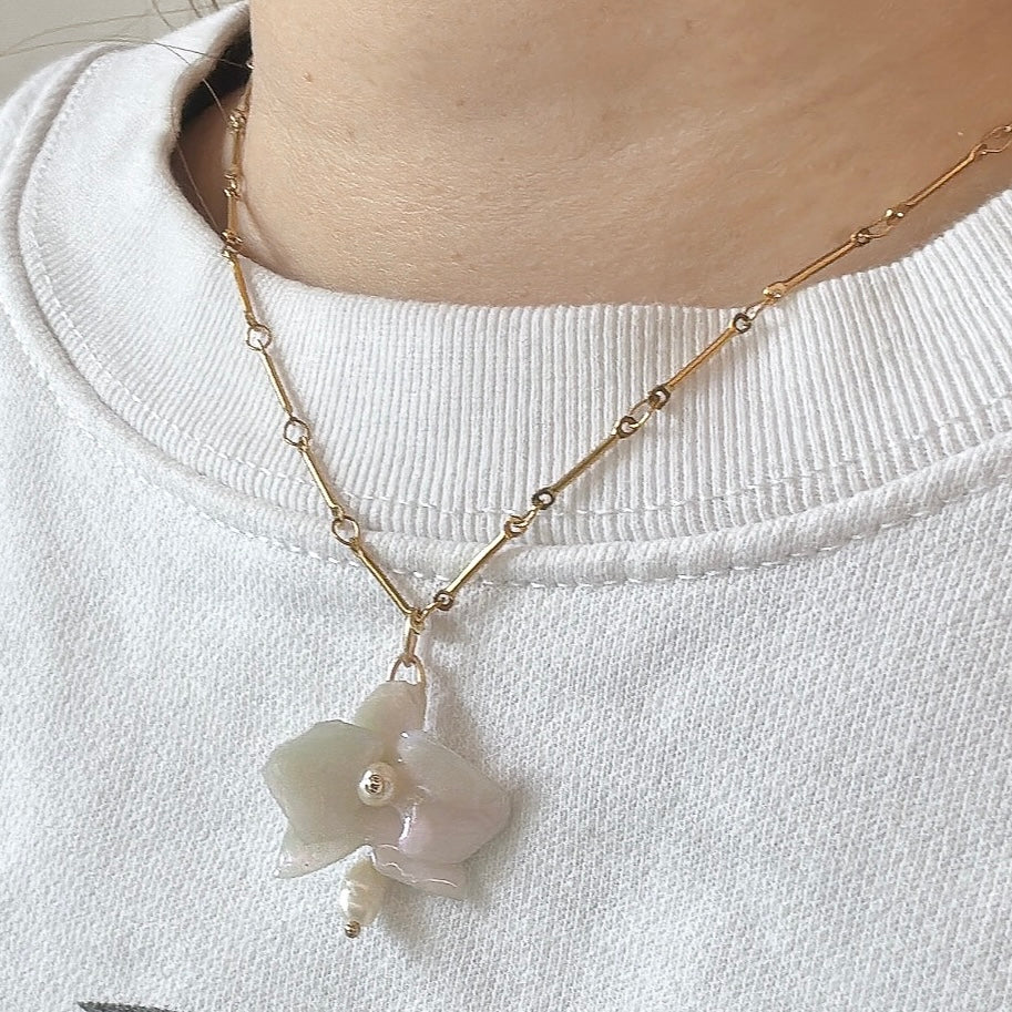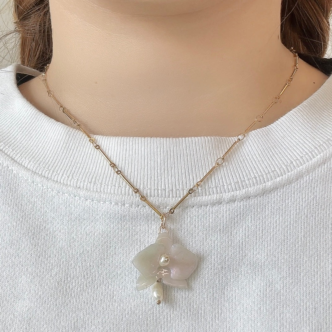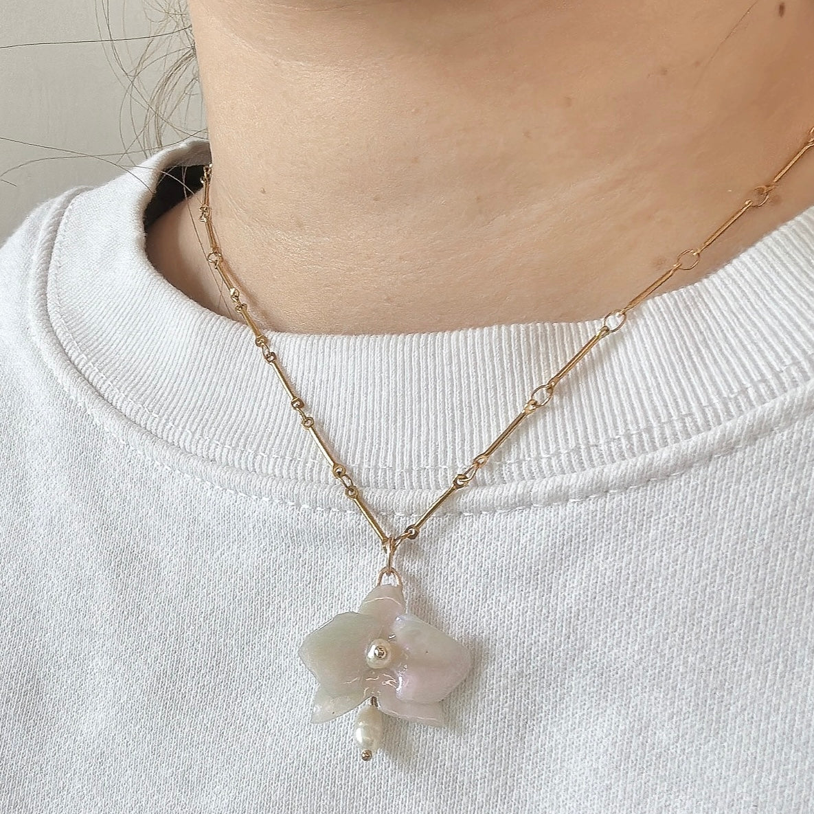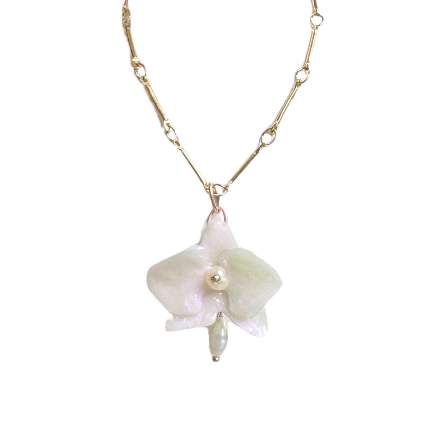 デンティー・オーキッド・ネックレス 小さな胡蝶蘭 -パールホワイト-