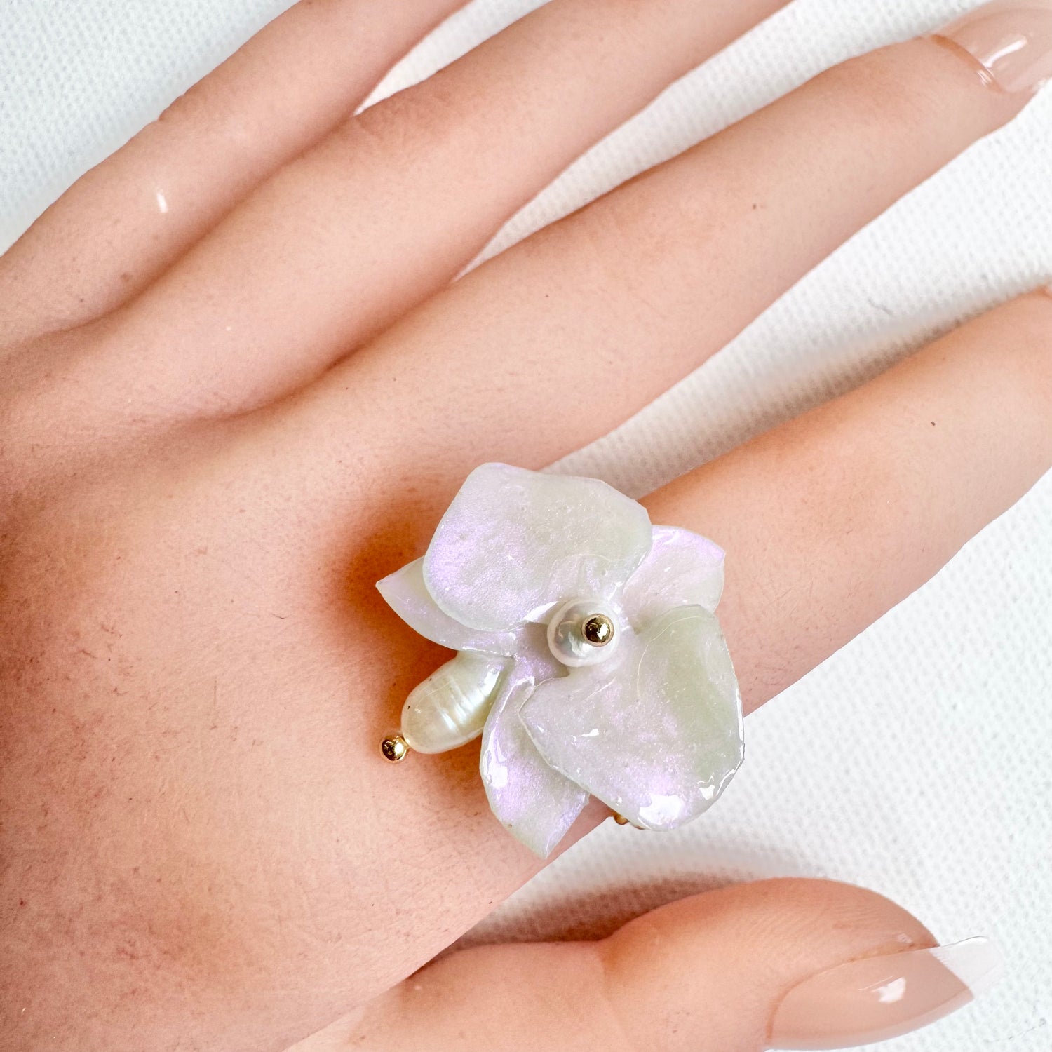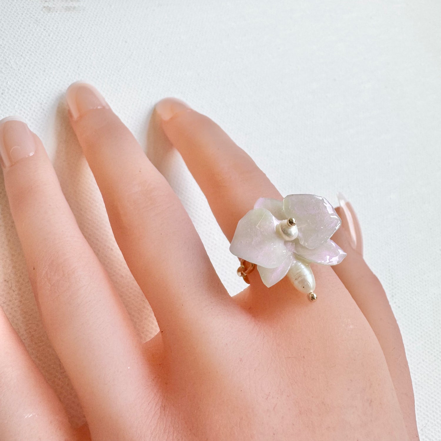 デンティー・オーキッド・リング 小さな胡蝶蘭 -パールホワイト-