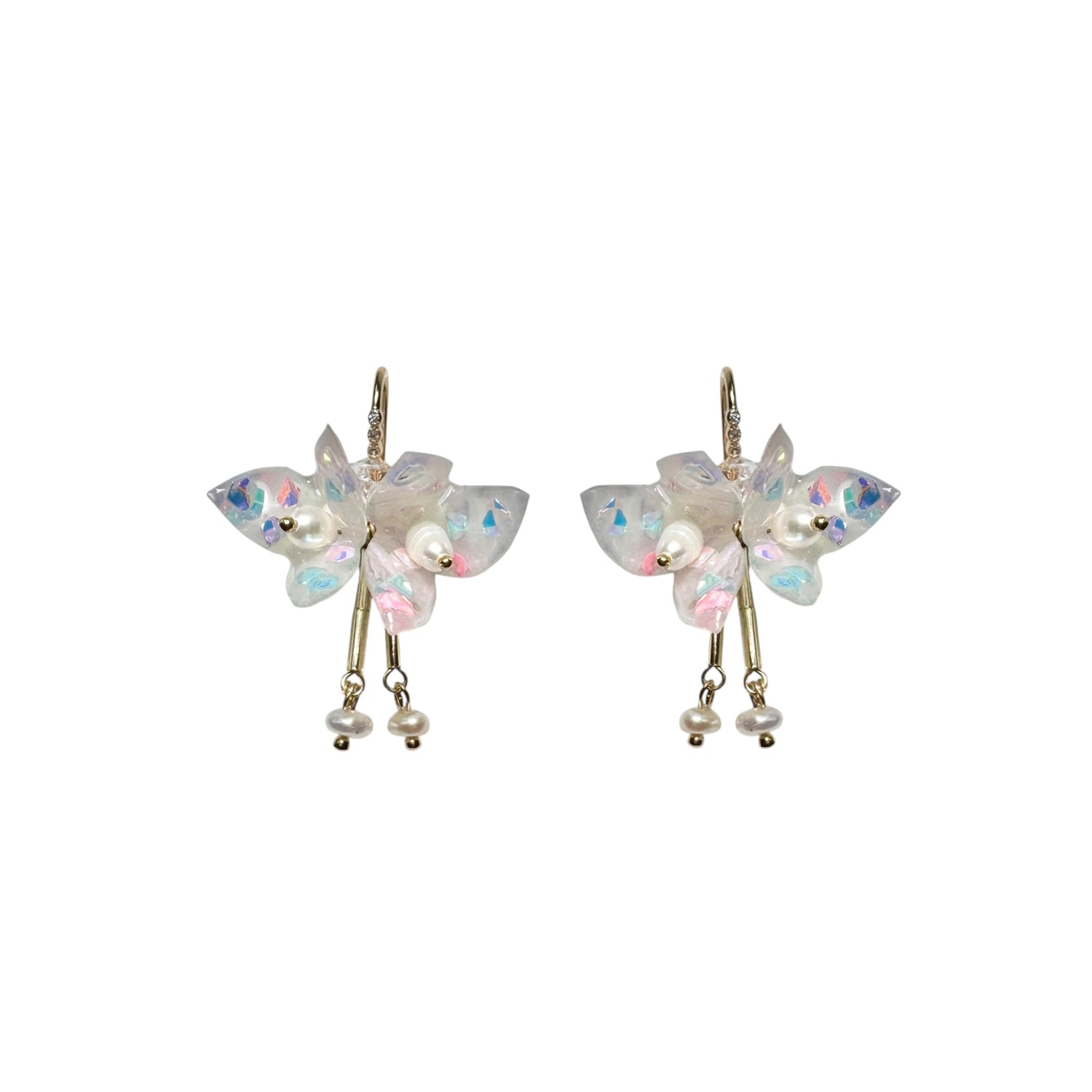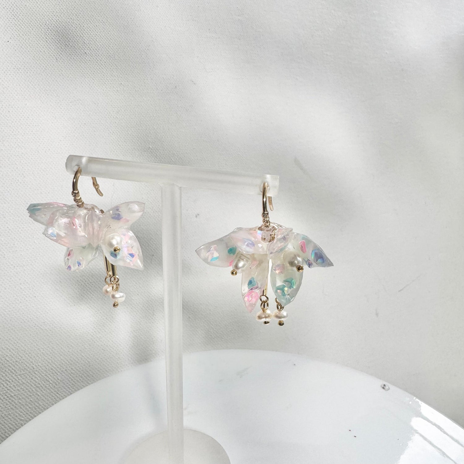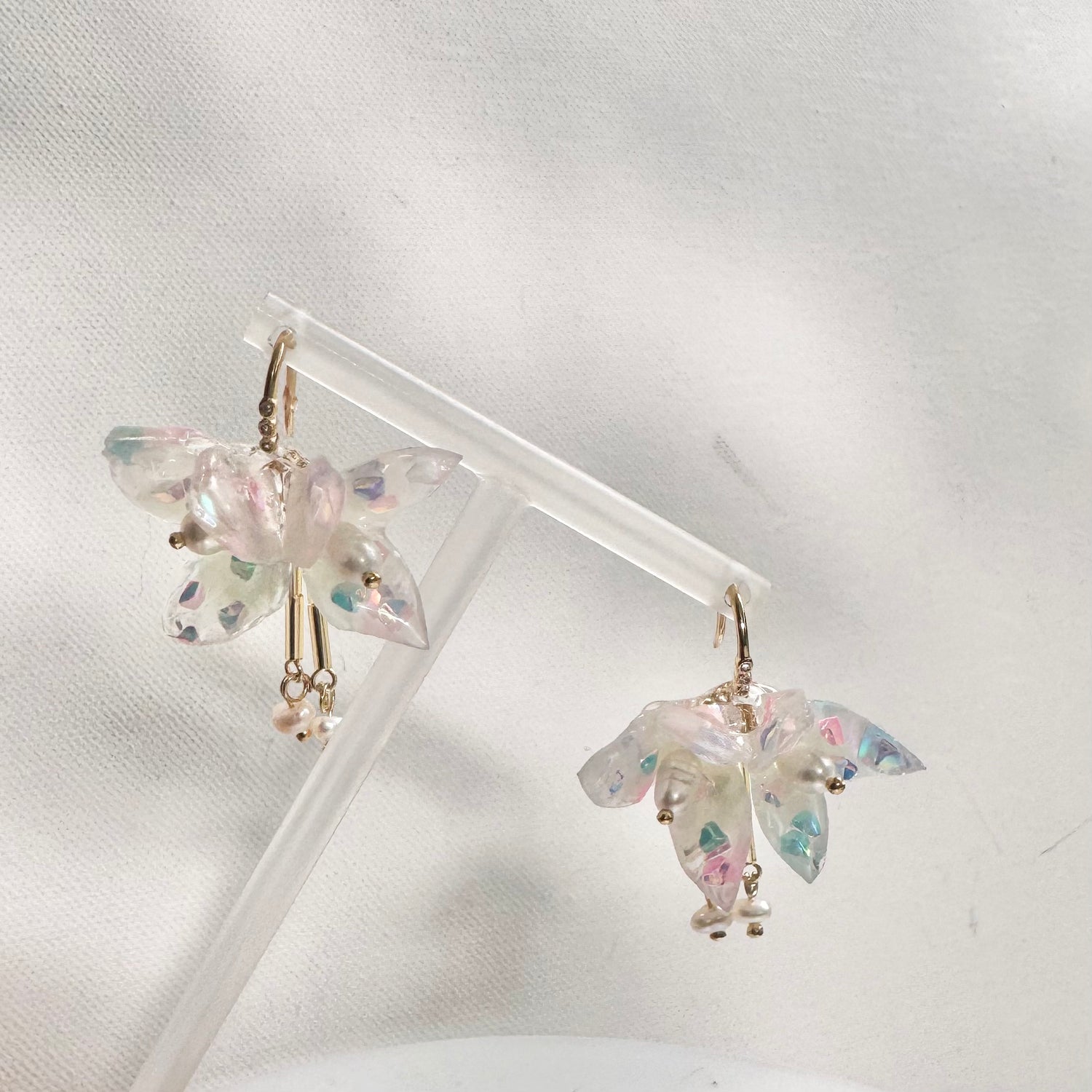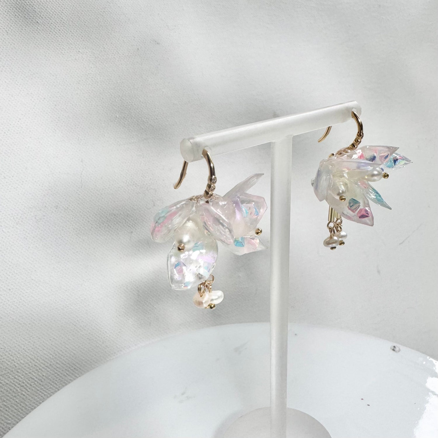 小さなパールのドロップが、さりげない揺れを添え、全体をふわりとした印象に仕上げています。