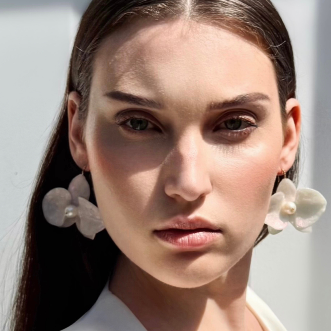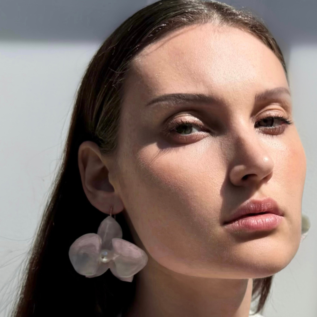 The Eternal Orchid Earrings in Aurora Pearl White capture the ethereal beauty of orchid petals with a mesmerizing, iridescent shimmer.