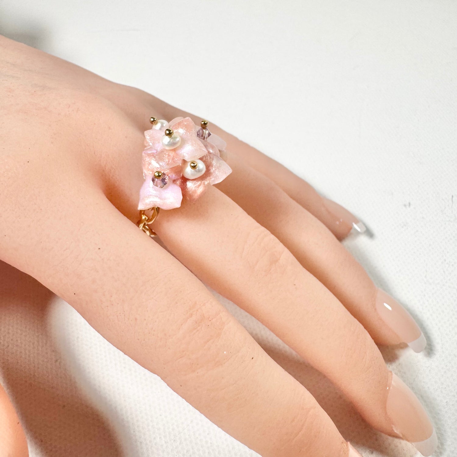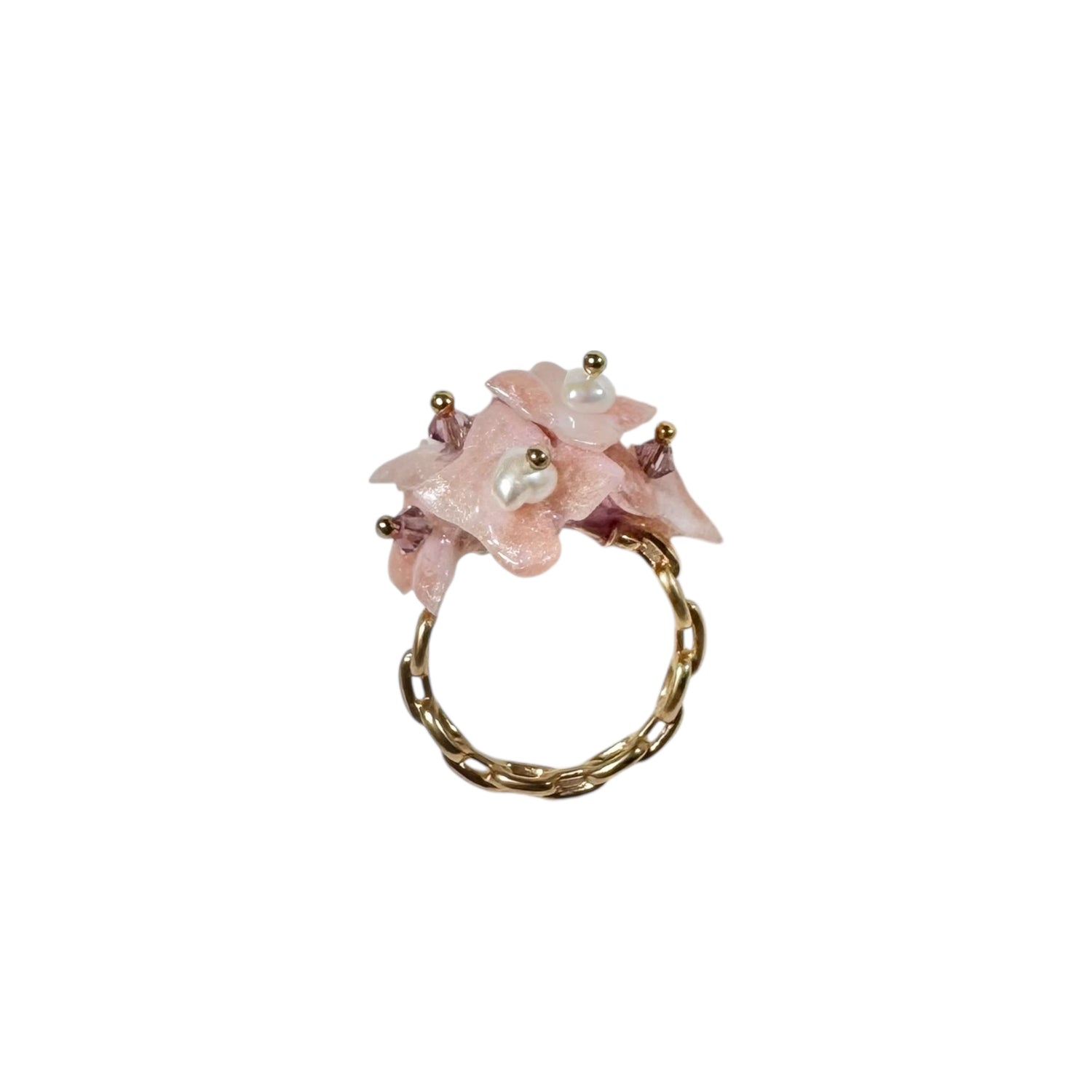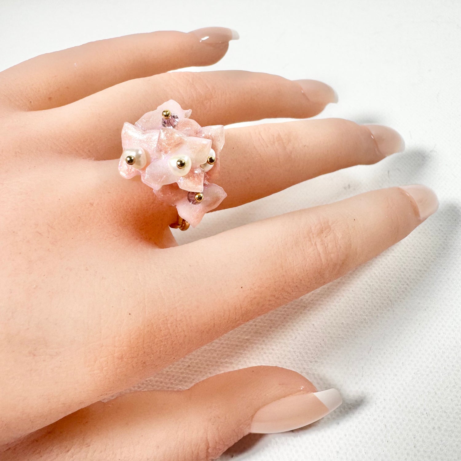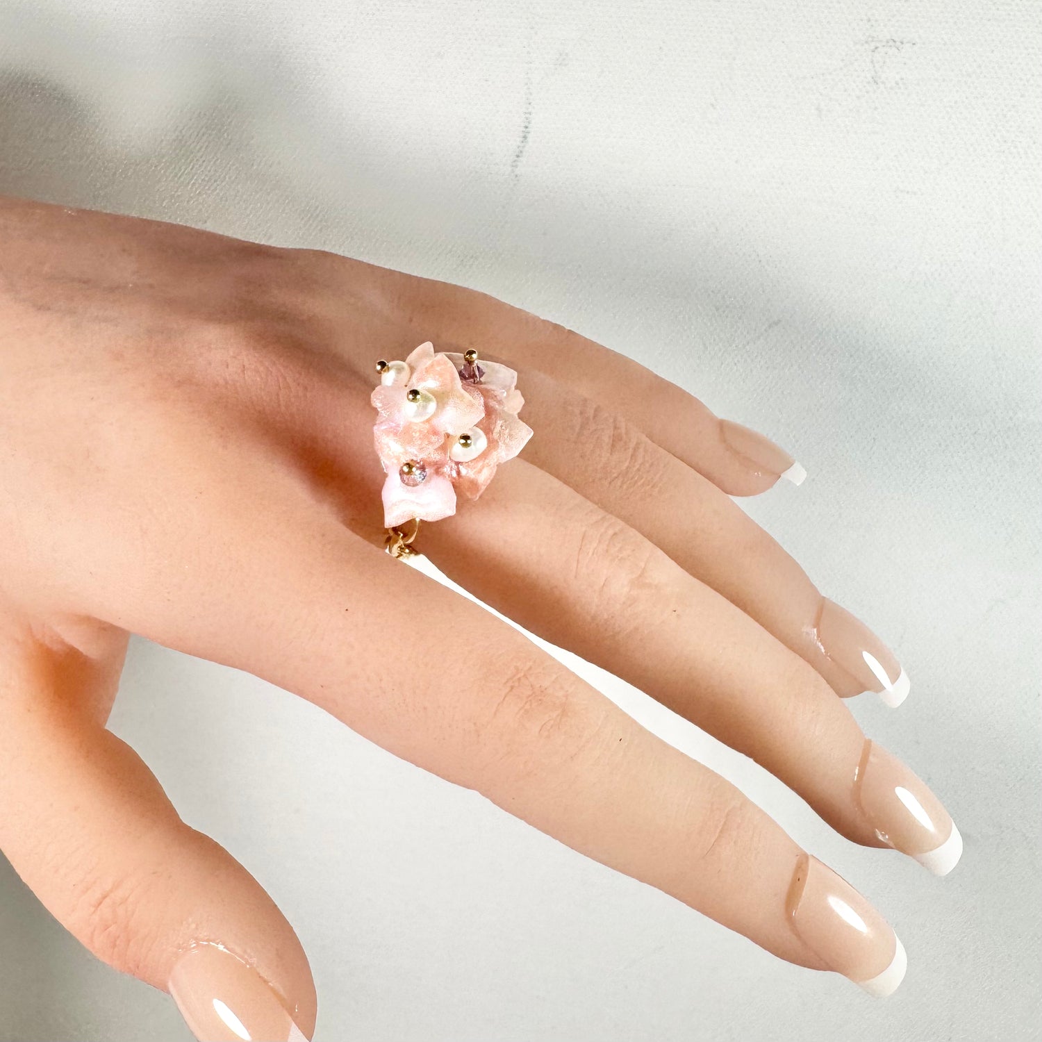 Soft as a petal and tender as a summer drizzle, the Blush Rain ring captures the gentle beauty of a hydrangea in bloom.