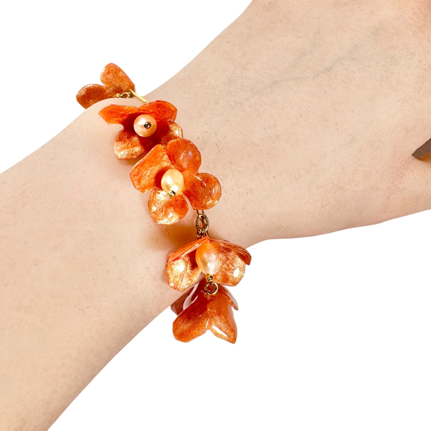 The bold, captivating color and intricate floral design radiate vitality and confidence, making this bracelet a lively addition to any look.