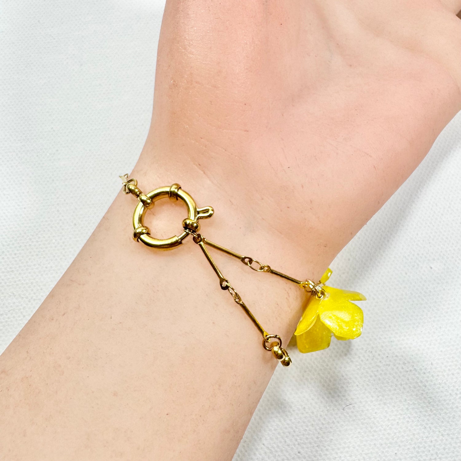 Crafted from upcycled plastic bottles, this bracelet features a bold yellow hue that symbolizes happiness, optimism, and the warmth of new beginnings.