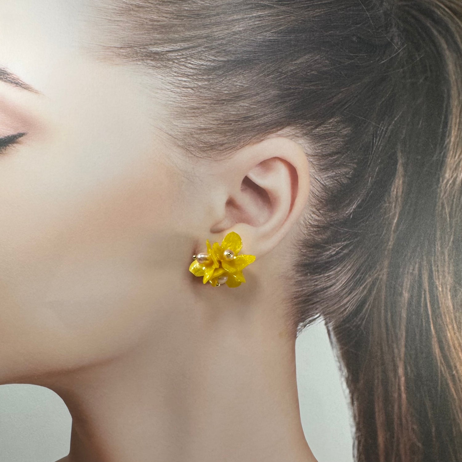 Crafted from upcycled plastic bottles, these earrings feature a bold yellow hue that symbolizes happiness, optimism, and the warmth of new beginnings.