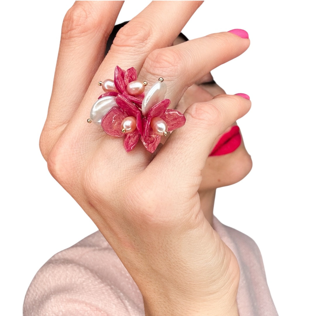 the Lilac Fantasy Ring – Antique Blush is a delicate statement piece inspired by nature’s soft elegance.