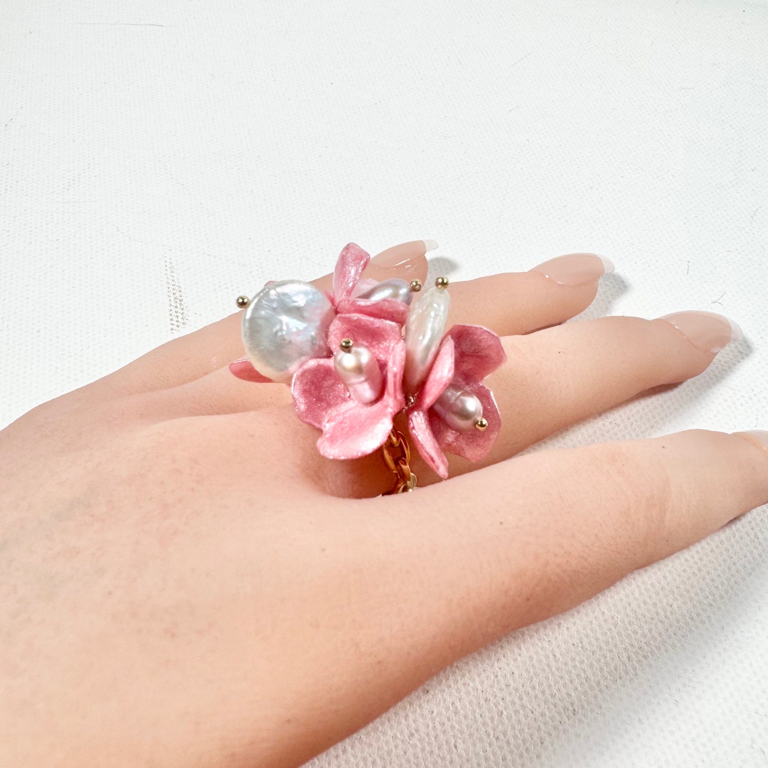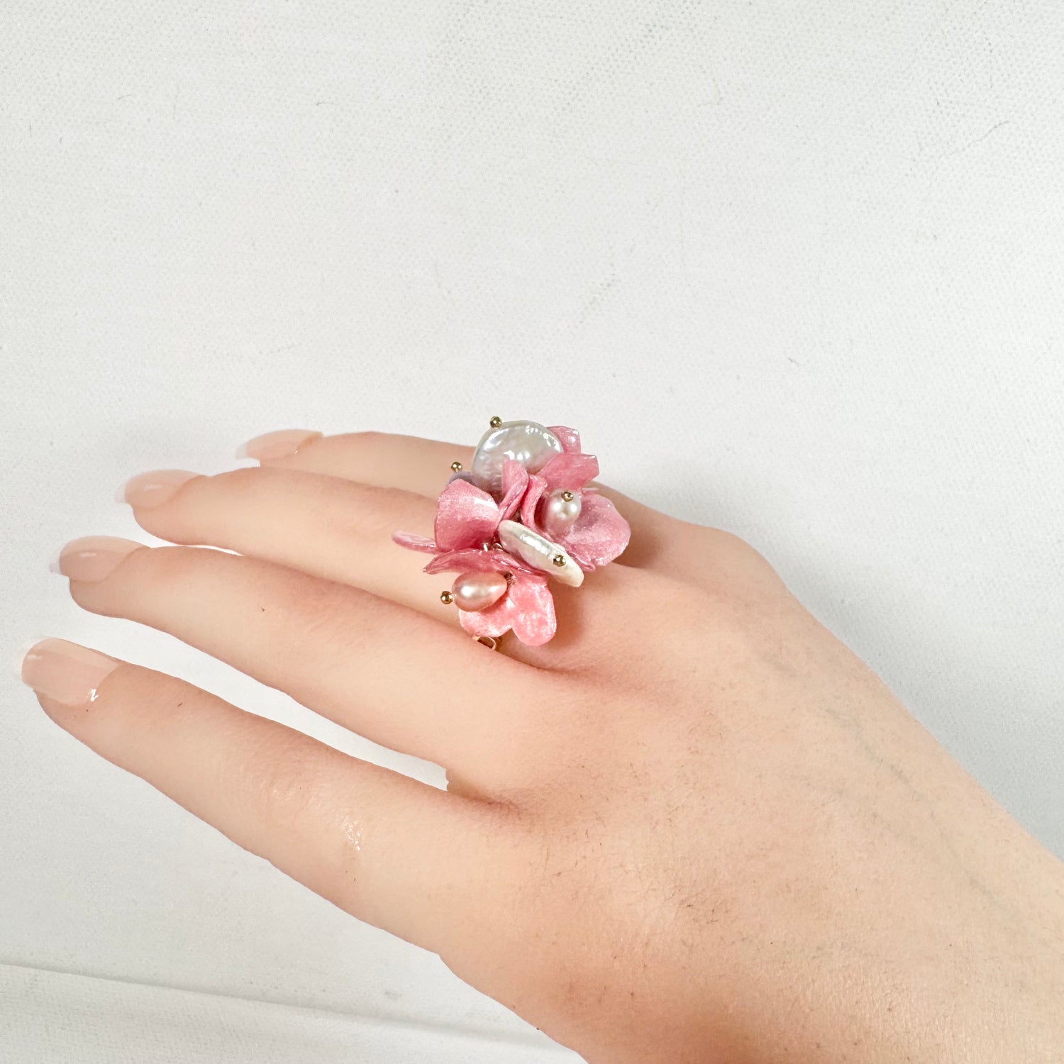 Light as a spring breeze and gentle as falling petals, the Sakura Bloom ring brings a soft touch of grace to your hand.