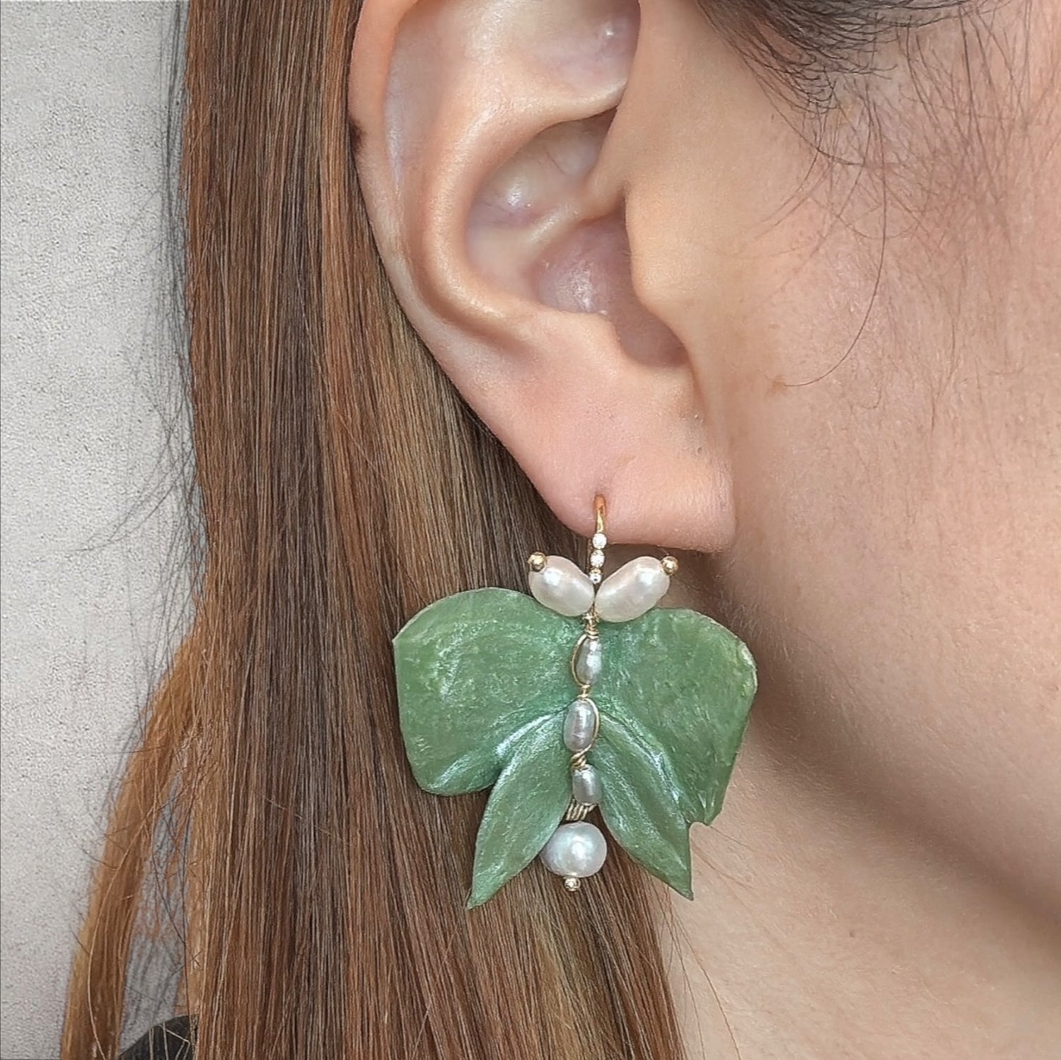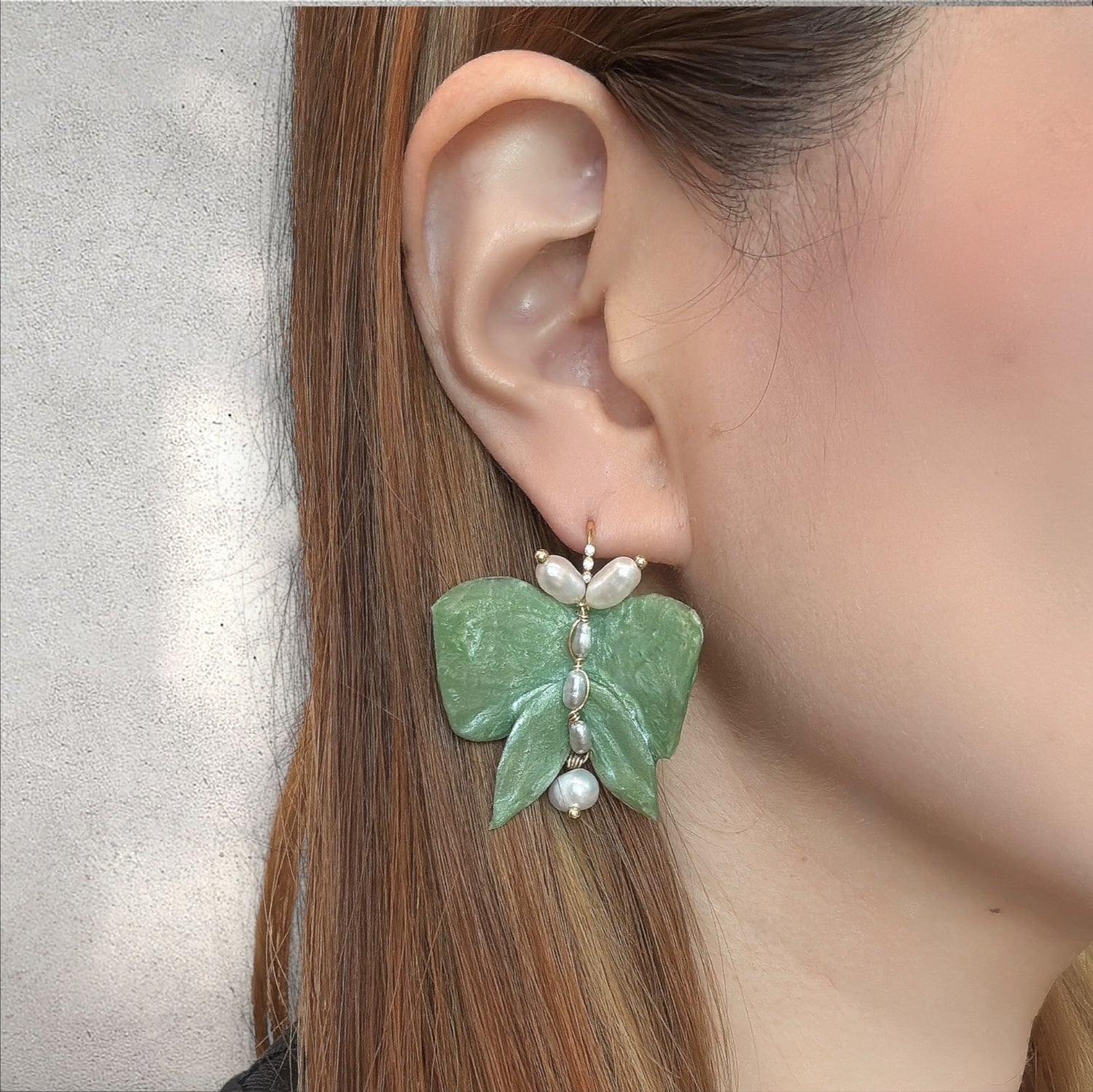Delicately shaped like butterfly wings, each pair is handcrafted and finished in Mint Breeze — a soft, airy green that shimmers subtly, like sunlight through morning mist.